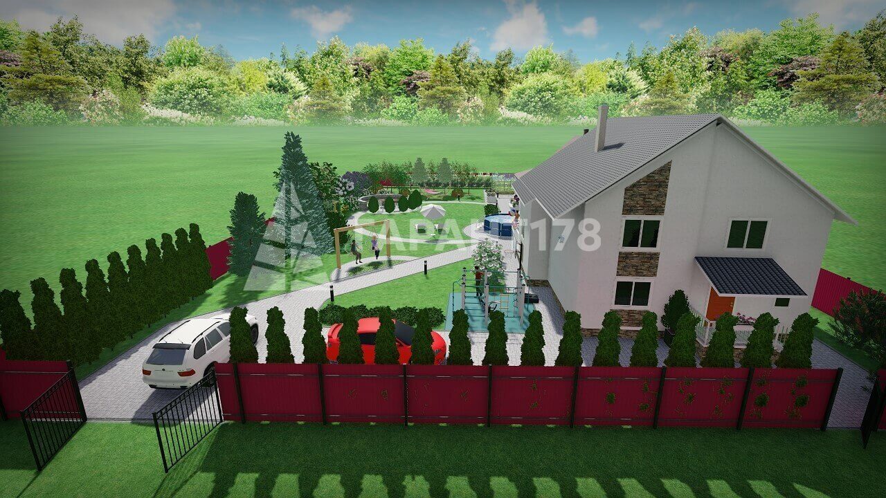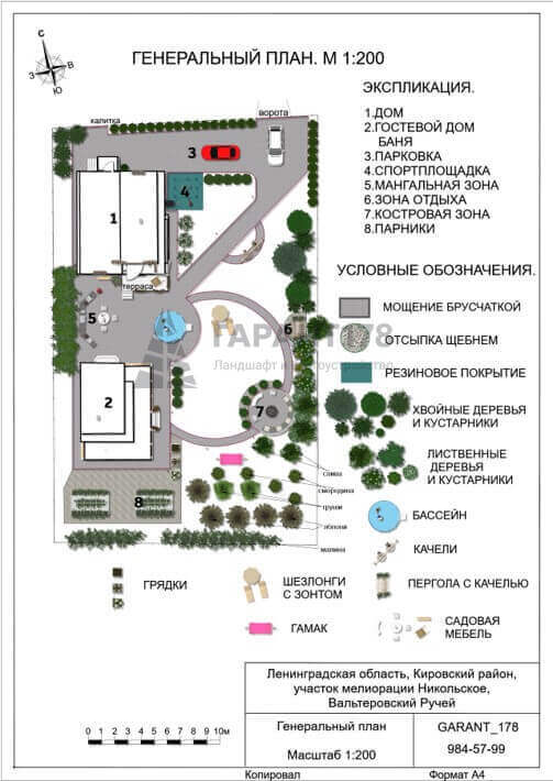 Продуманная дорожно-тропиночная сеть, соединяющая здания между собой. Просторная зона патио в центре.