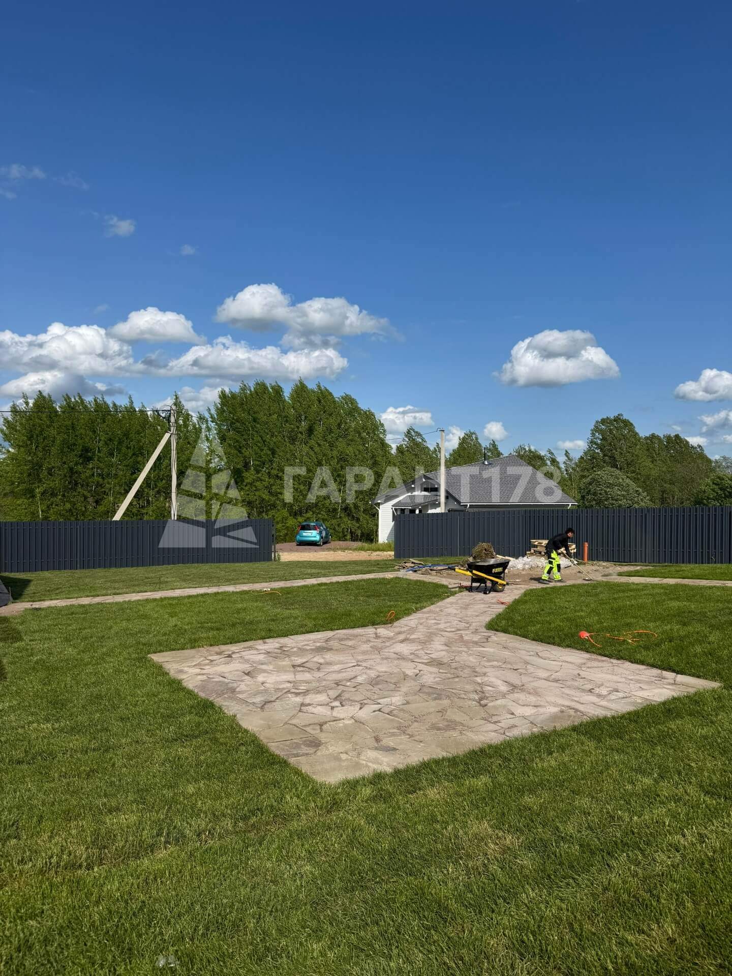 Часть мощения была уже сделана ранее (в прошлом году). Но дальше у заказчика возникли трудности с планировкой участка, и он обратился к нам за проектом.