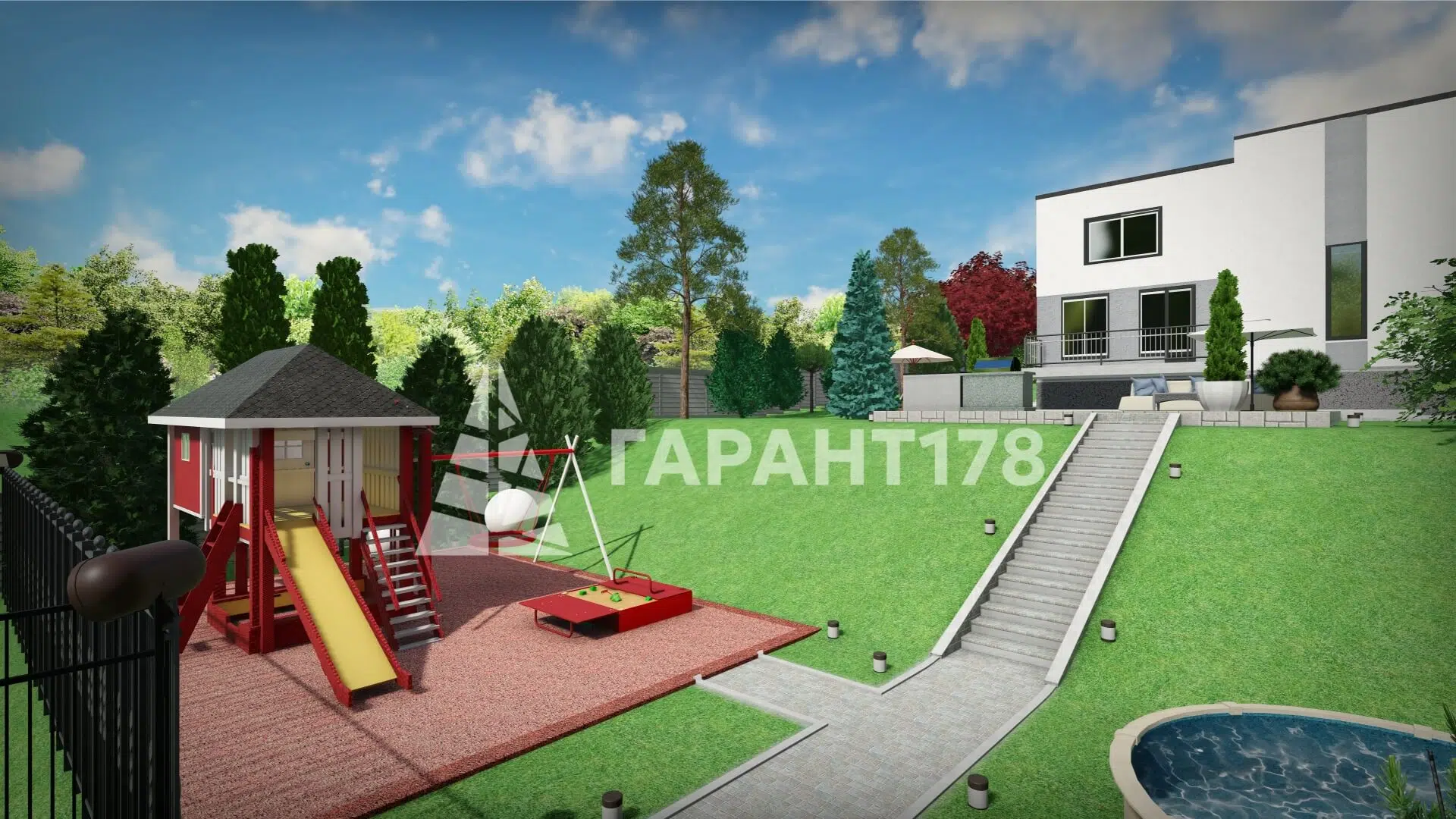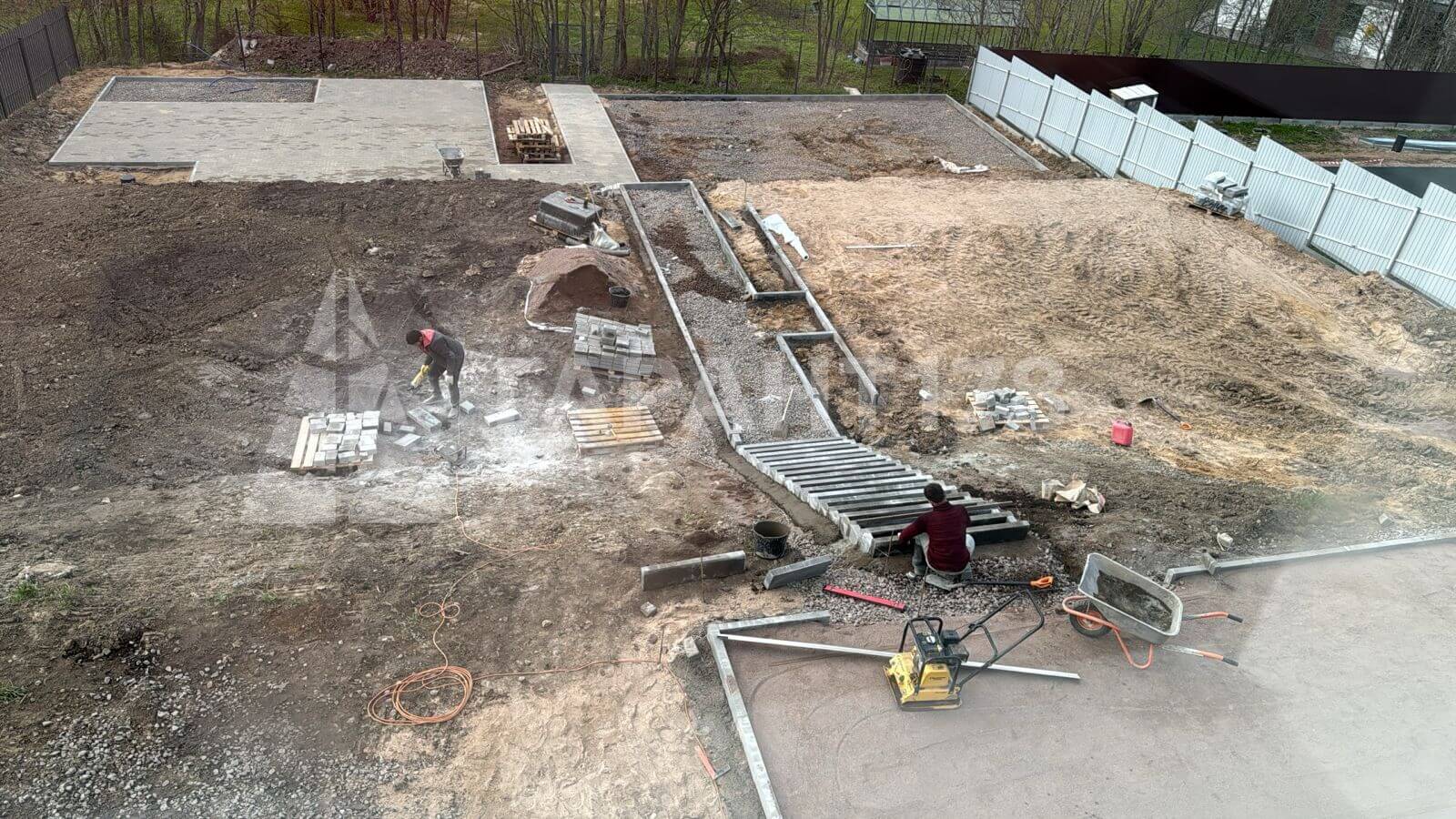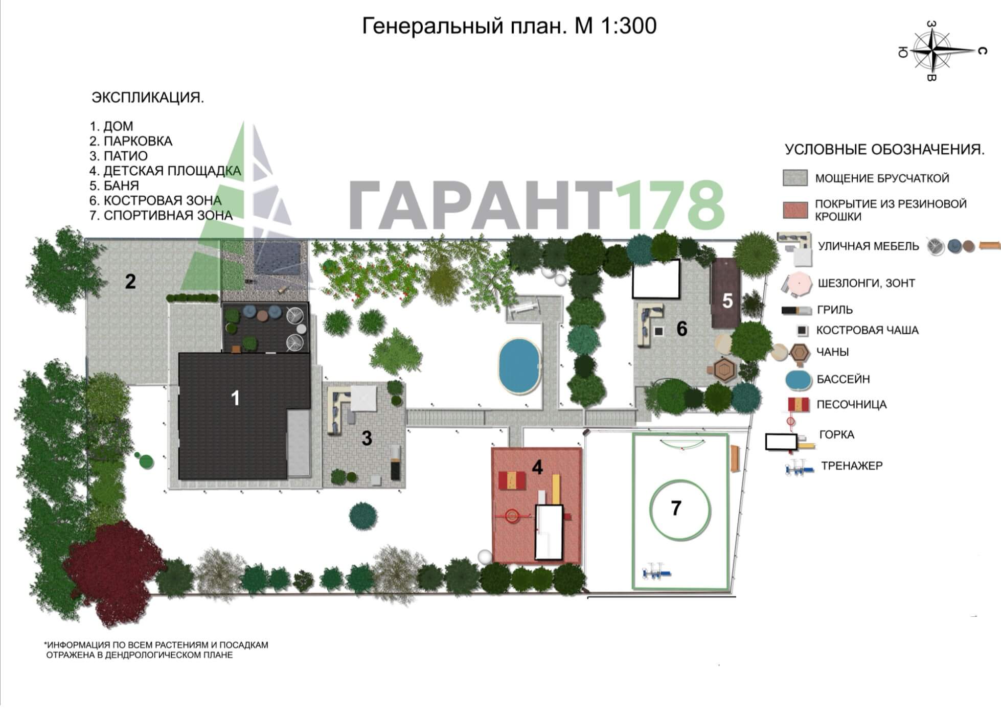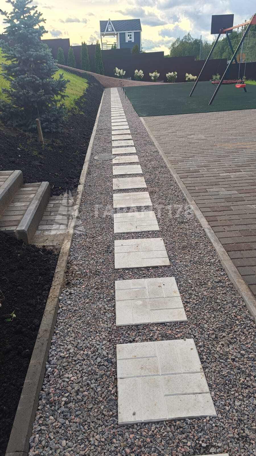 Для разделения участка на зоны подготовили детальный проект всего участка, а также дендроплан и план освещения. Согласно плану провели мощение всех зон, дренаж и установку светильников