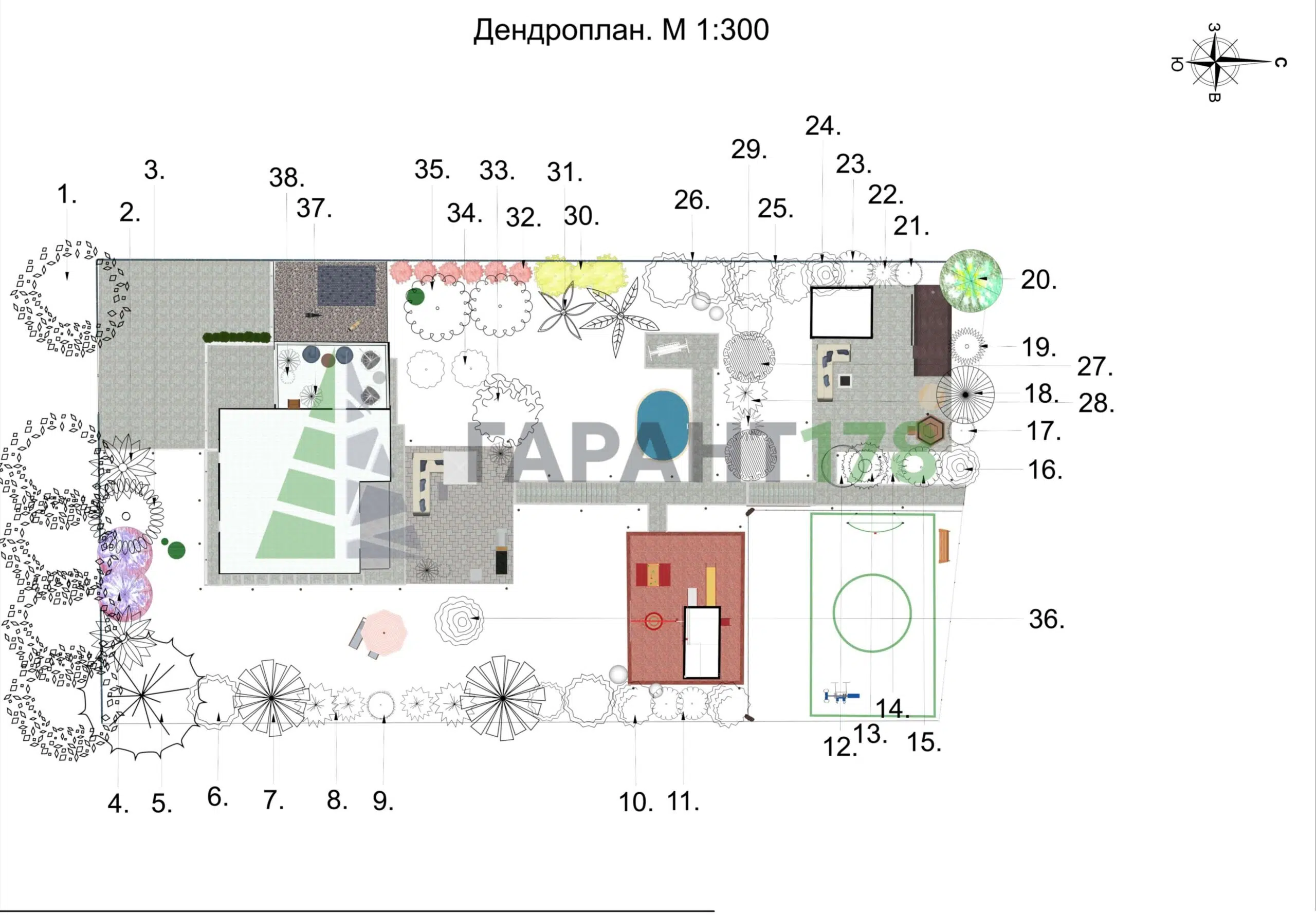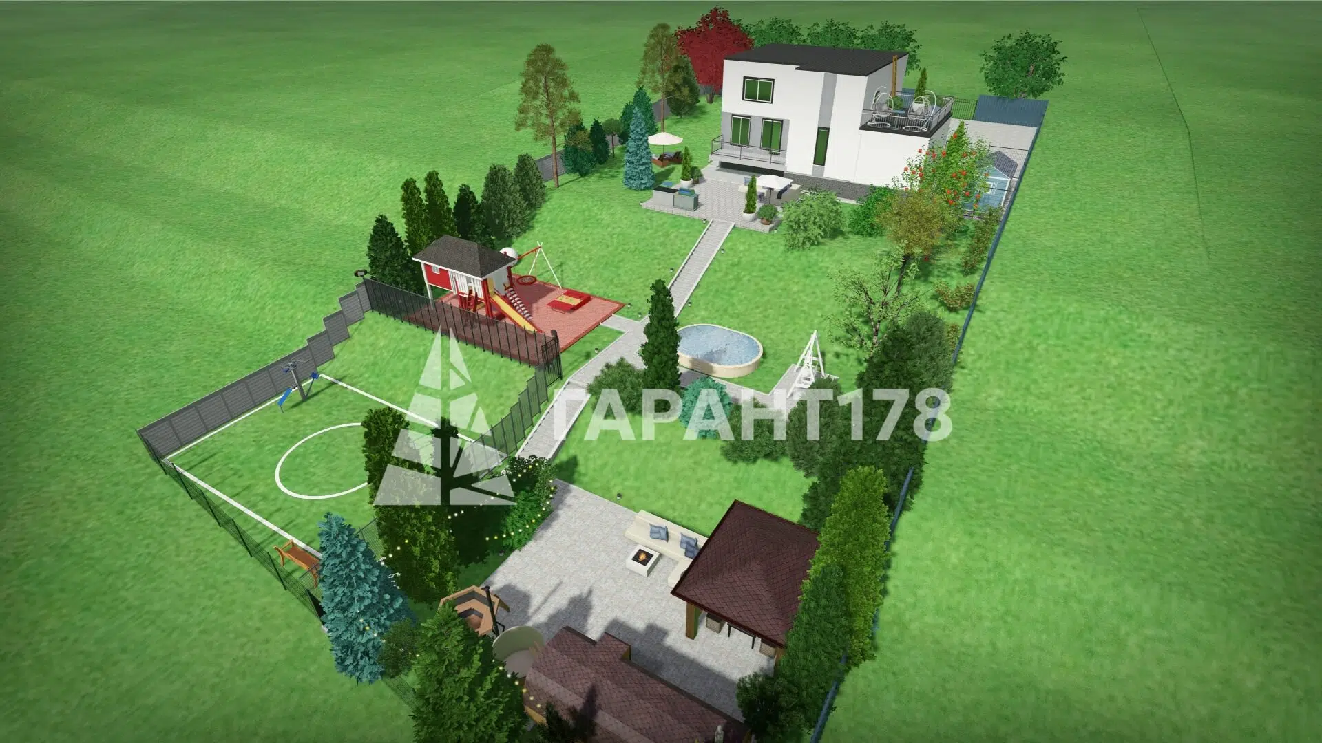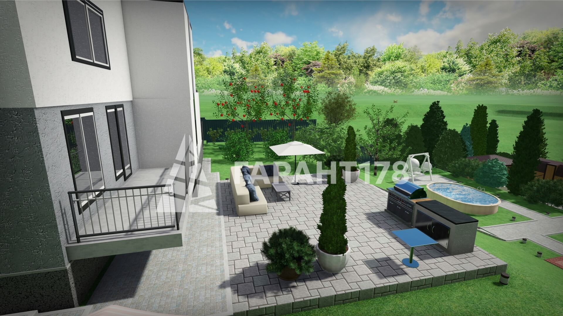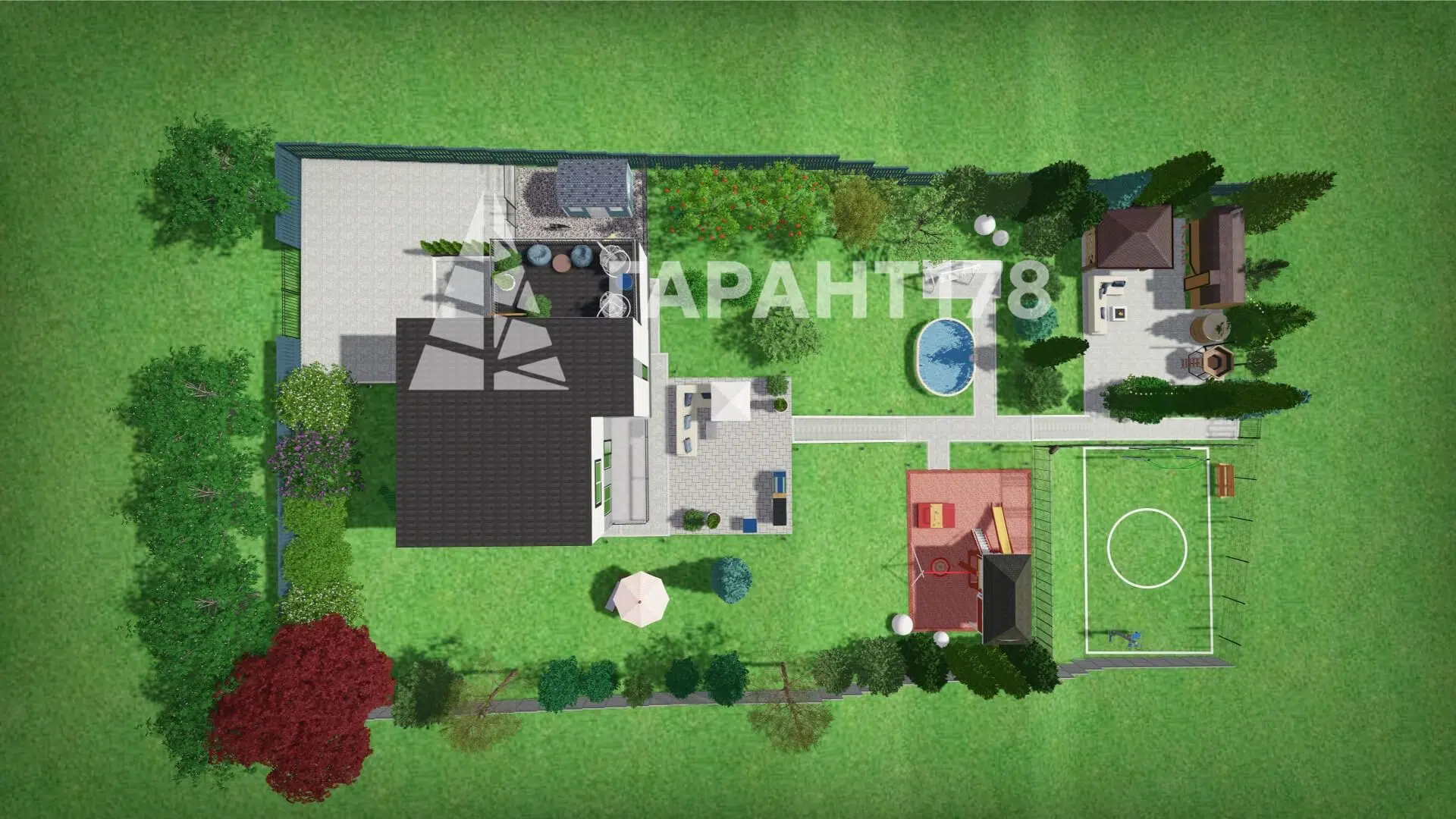 Для разделения участка на зоны подготовили детальный проект всего участка, а также дендроплан и план освещения. Согласно плану провели мощение всех зон, дренаж и установку светильников