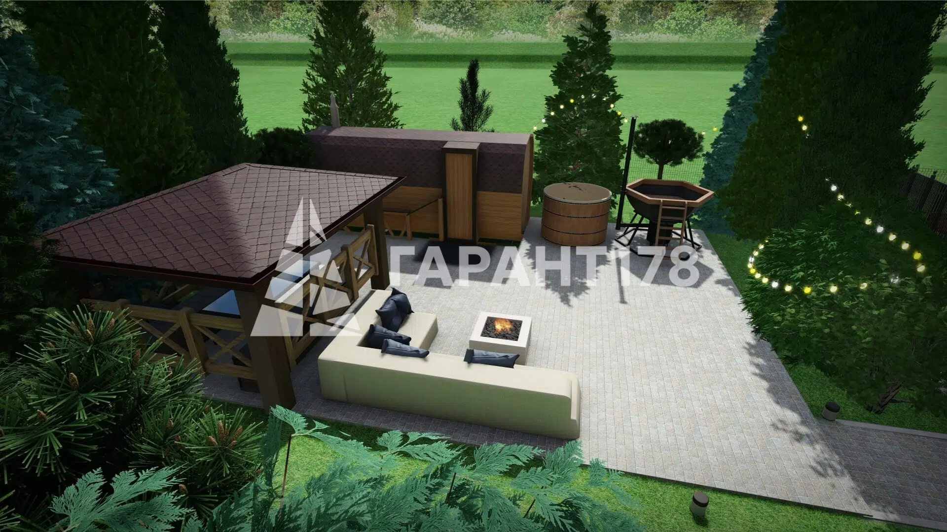 Выделить зону бани, как уединенное, закрытое место среди хвойных посадок.