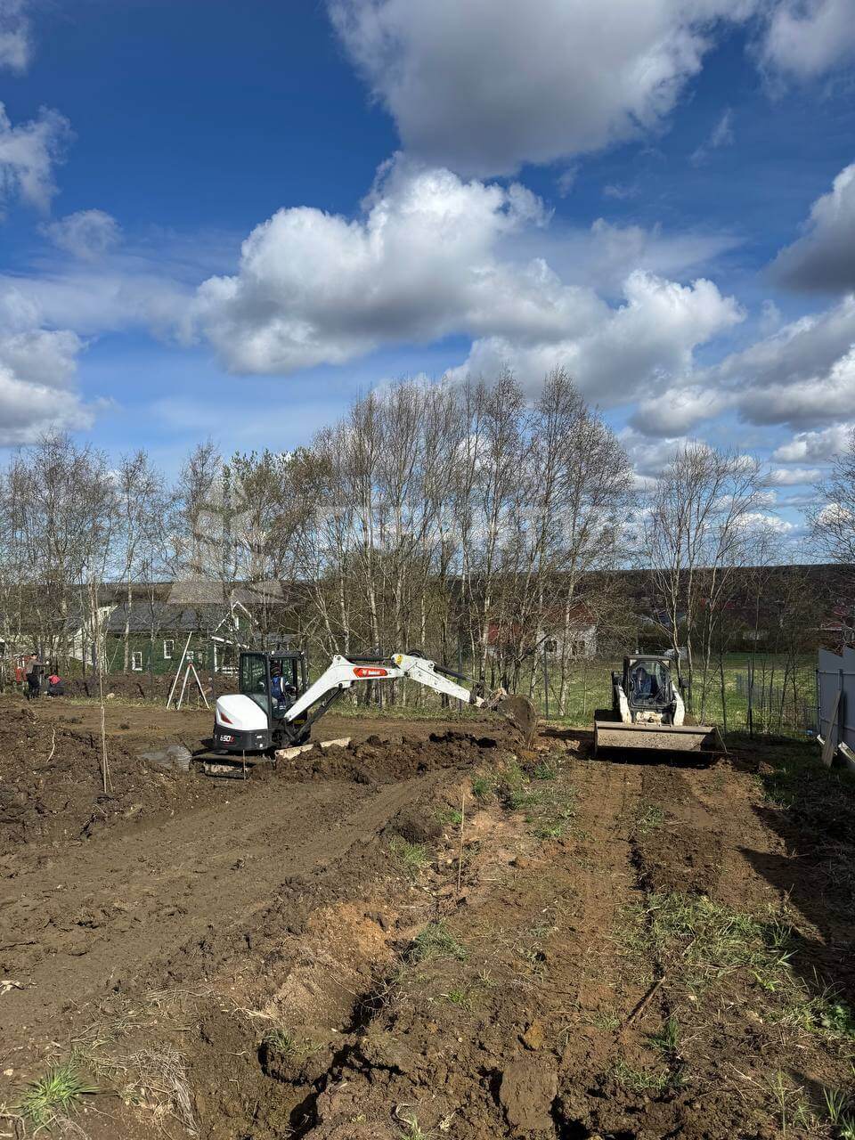 Участок совсем непростой - 5 метров перепад от дома до нижней части участка, поэтому было решено сделать 3 уровня без использования подпорных стенок.