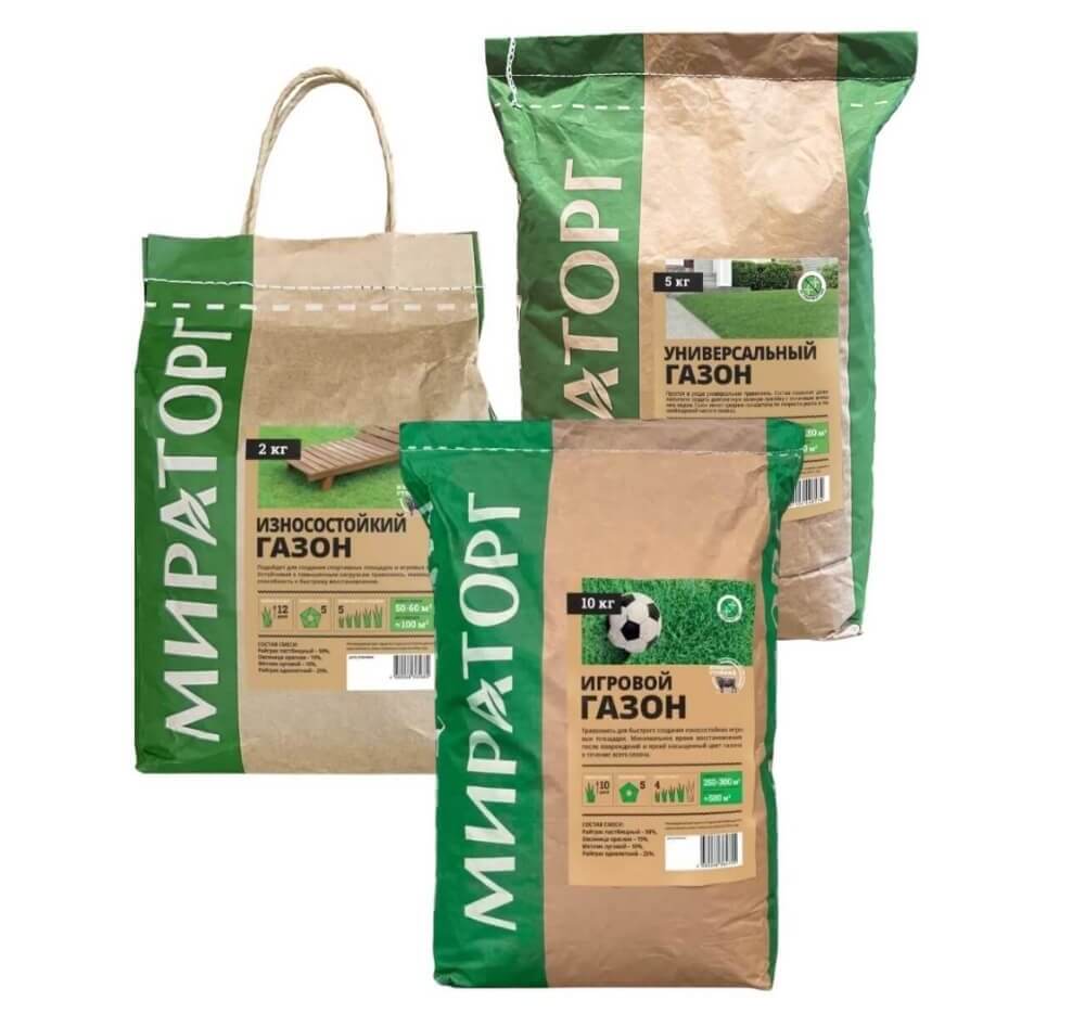 Мы используем травосмеси от российского бренда Мираторг, хорошо адаптированные под климатические условия Санкт-Петербурга и Ленинградской области и имеющие прекрасное соотношение «цена-качество».